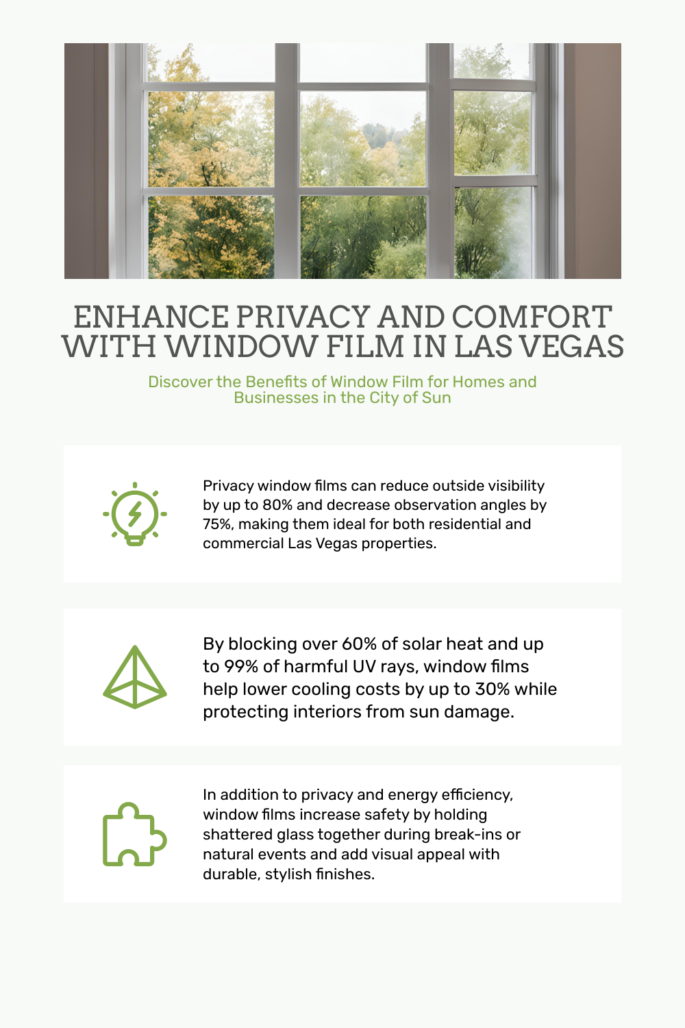 Welcome to Las Vegas, where the sun shines over 300 days a year and the bustling city life never dims. At Window Film Las Vegas, we understand the unique challenges and opportunities this presents for maintaining privacy and comfort in your home or business. That’s why we specialize in providing top-tier window film solutions that offer privacy, energy efficiency, and protection against the harsh Nevada sun.